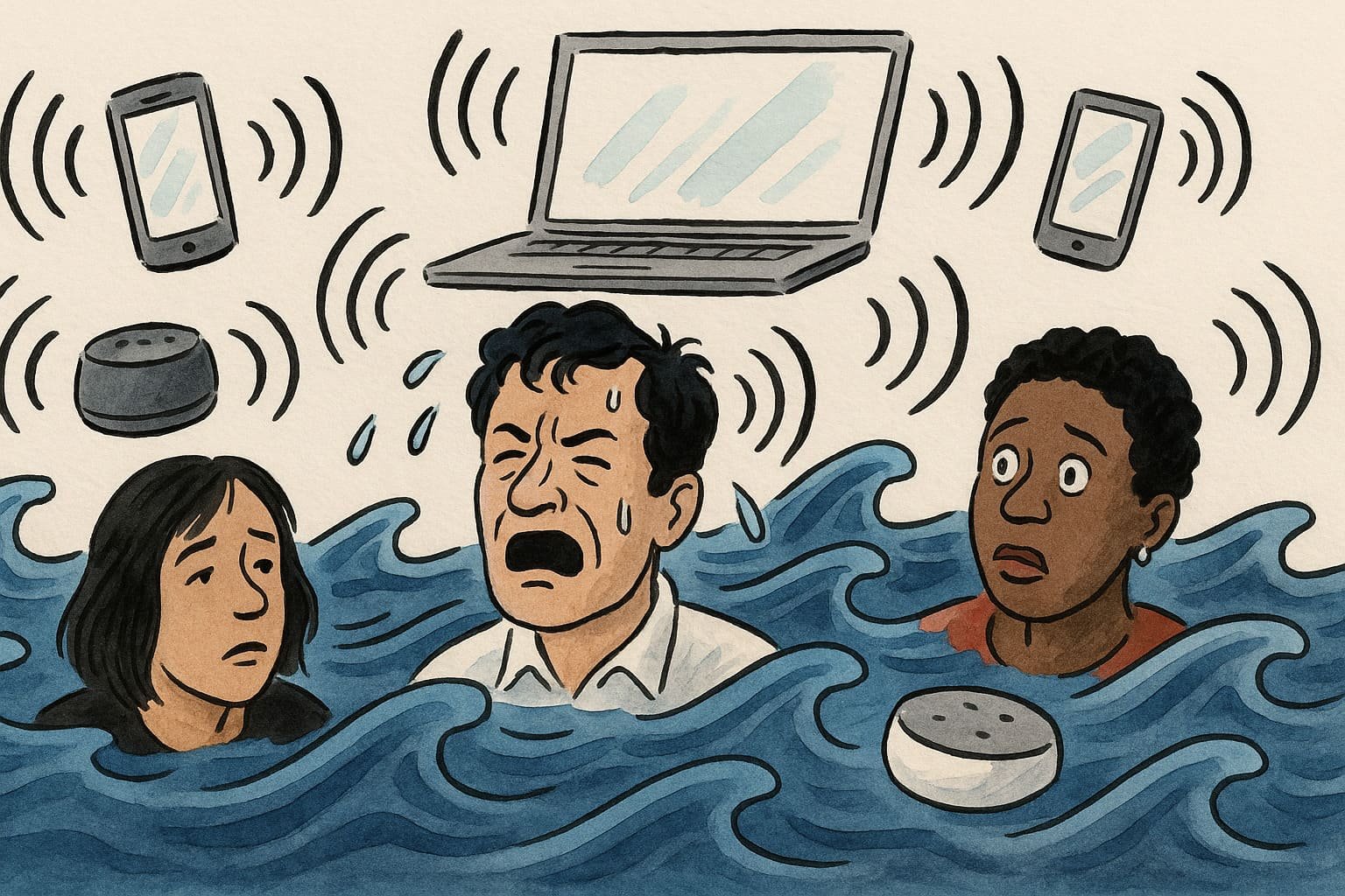 You believe the right tool can save you, but soon every tool becomes another distraction. That to-do app with “AI-powered focus” starts sending push notifications about your productivity goals. Your smartwatch vibrates during dinner with reminders about hydration and posture, while a voice assistant recites tomorrow’s news. The tools that once promised peace now wage war for your attention, each upgrade sharpening the noise instead of softening it.