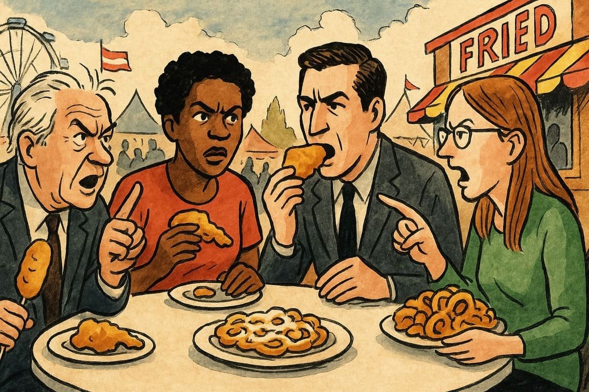 As the day wound down and the fairgrounds began to empty, Frank couldn’t help but feel a sense of accomplishment. He hadn’t solved the nation’s political issues. He hadn’t ended the culture wars. But for one afternoon, in a sea of deep-fried snacks, he had witnessed something extraordinary. People were talking—truly talking—across ideological lines. Maybe, just maybe, that was the first step toward something better.
